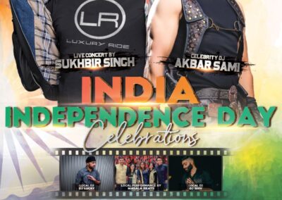 Celebrate India Independence Day with the King of Bhangra SUKHBIR and party all night with the legendry DJ AKBAR SAMI.